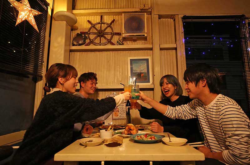 CITY-MARINE(シティーマリン)は、愛知県名古屋市天白区にある、カフェ&ダイニングのお店です。昼はランチ、夜はお酒・お食事をご提供。船のデッキをイメージした店内は、ちょっと隠れ家的な雰囲気で、デートや特別な会食にもぴったりの空間。こだわりの料理と共に多彩なカクテルやお酒もご堪能ください。